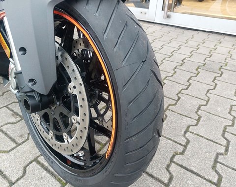Mit großzügiger Serienausstattung, einem neu abgestimmten Motor und unverkennbar kantigem KTM-Design will die 1290 Super Duke GT in das Sport Touring-Segment einsteigen. Mit fahrbarer Performance und der vollen Leistung des Naked Bikes im Geiste des "Ready-to-Race"-Credos hebt sie sich nicht nur optisch von den Mitbewerbern ab. Die mattighofener Sportfanatiker montieren sogar Heizgriffe und einen Tempomaten, um Vielfahrern ein schönes Plätzchen zu bieten. Irgendwie schaffen sie es trotzdem, glaubwürdig zu bleiben und beim Fahrer Begeisterungsstürme auszulösen.- umfangreiche Serienausstattung